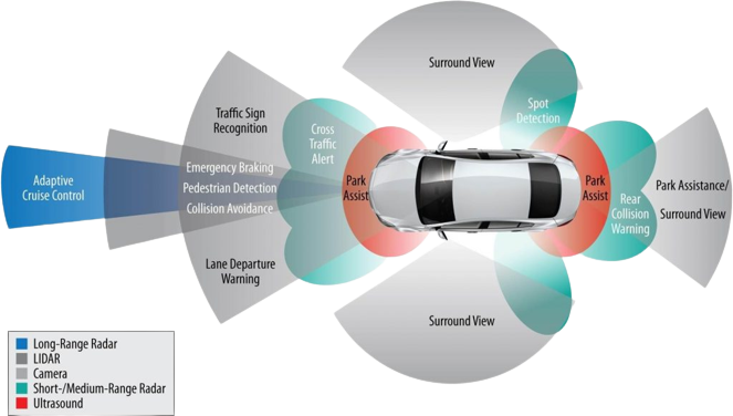 Blind-spot detection detects activity in the rear quarter blind spots of the vehicle while driving. These blind spots are notorious for hiding approaching vehicles in adjacent lanes. This ADAS safety feature helps to assist drivers with the ability to survey their surroundings and detect anything that might be missed, for example while glancing backwards to change lanes.